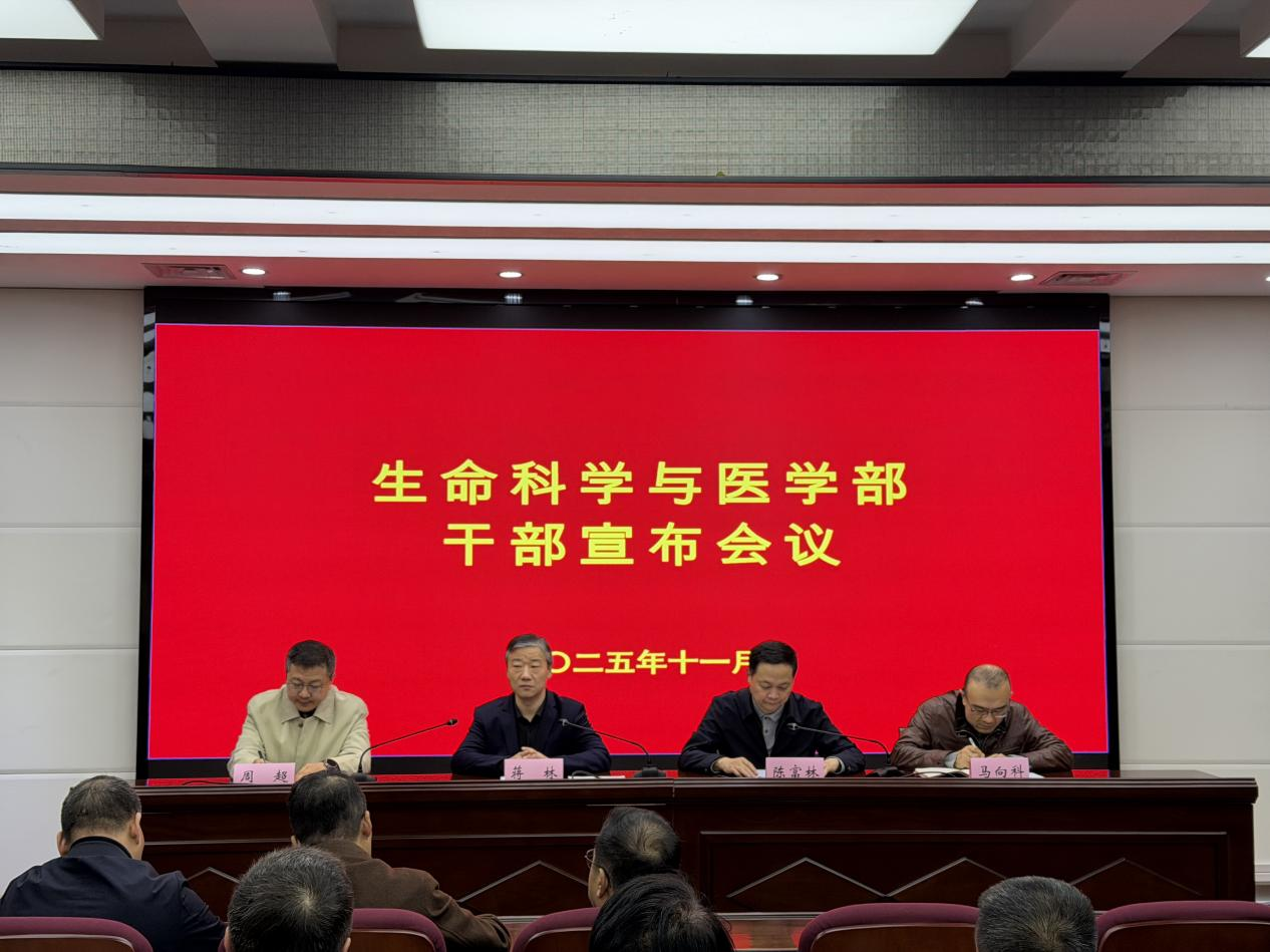 蒋林在讲话中指出,此次生命科学与医学部调整及干部充实,是学校立足长远、面向未来的战略性部署,旨在优化学科结构、集聚优质资源、激发协同创新活力。就学部今后建设发展,他提出三点要求:一是坚持战略引领,科学谋划学部发展。要以学科建设和学术研究为核心,坚持学术先行、内涵发展,统筹制定并动态完善生命科学与医学及相关交叉领域的发展规划。要立足学校“十四五”收官、谋划“十五五”开局的关键时期,充分发挥学部及附属医院专家学者的作用,聚焦国际前沿与国家重大战略需求,构建“面向前沿、对接需求、彰显特色”的学术生态,为学部发展确立清晰方向。二是深化体制机制创新,激发协同创新活力。要以体制机制创新为突破口,强化学部统筹协调职能,完善部务管理委员会领导下的学部主任负责制、部务联席会议制度和学术咨询委员会建设,打破学科壁垒,促进资源整合。要布局建设跨学院、跨学科、跨医院的协同创新平台和联合研究团队,以重大科学问题和科研任务为牵引,形成有组织科研新格局,积极培育新的学科增长点和标志性成果。三是推进医教研一体化建设,提升科技创新与成果转化能力。要充分发挥学部桥梁纽带作用,依托附属医院优质临床资源,促进基础研究与临床应用双向融通。要健全医教研协同机制,构建全过程医学教育体系和规范临床教学体系,推动生物学、药学、医学、食品科学等多学科与附属医院之间的人员互聘、资源共享、项目共担,不断提升临床研究能力和医学成果转化效率。